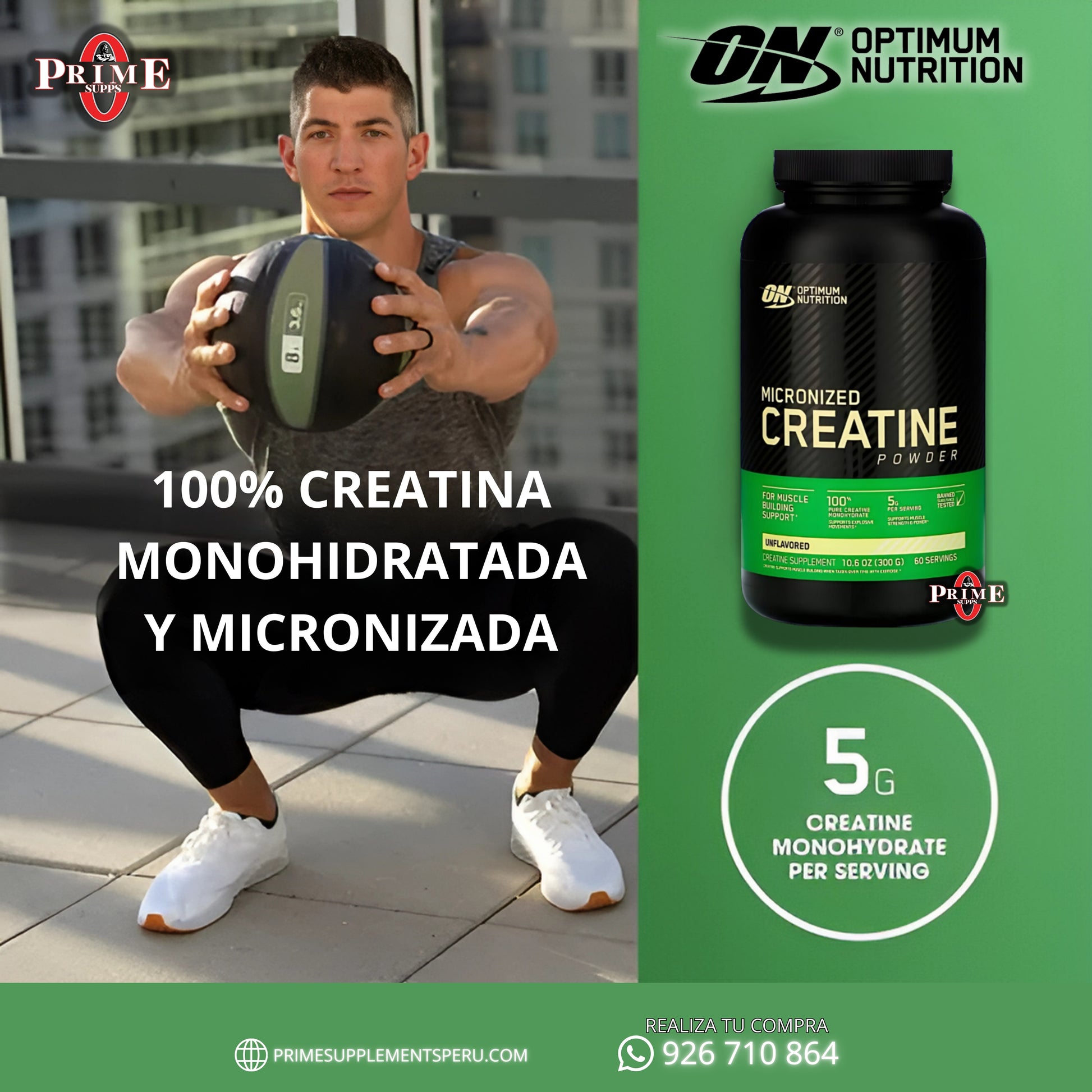 CREATINA MONOHIDRATADA Y MICRONIZADA (300 GR) - OPTIMUM NUTRITION