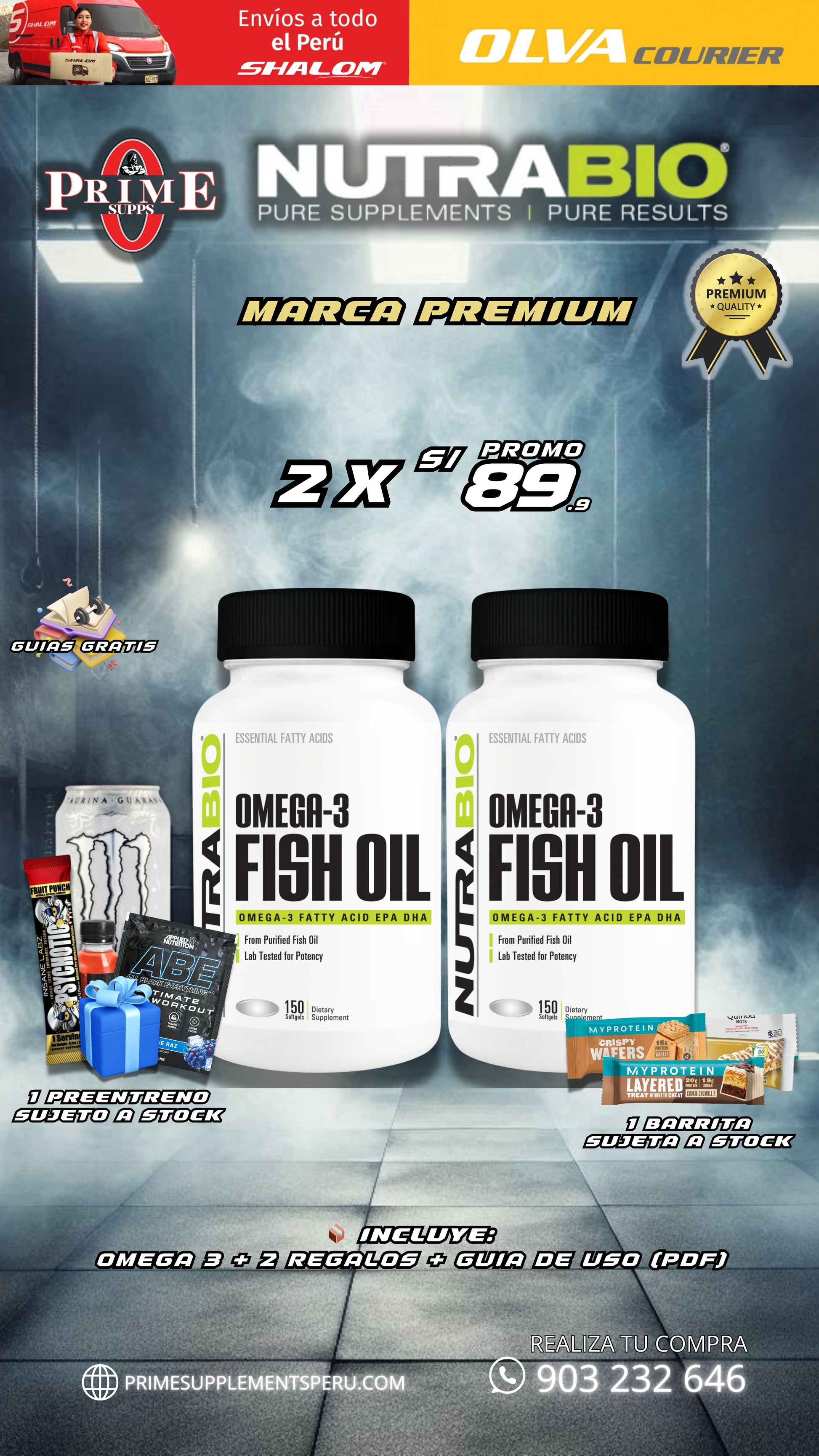 DUO OMEGA 3, 150 CAPSULAS, NUTRABIO + 2 REGALOS 🎁 (PROMO)