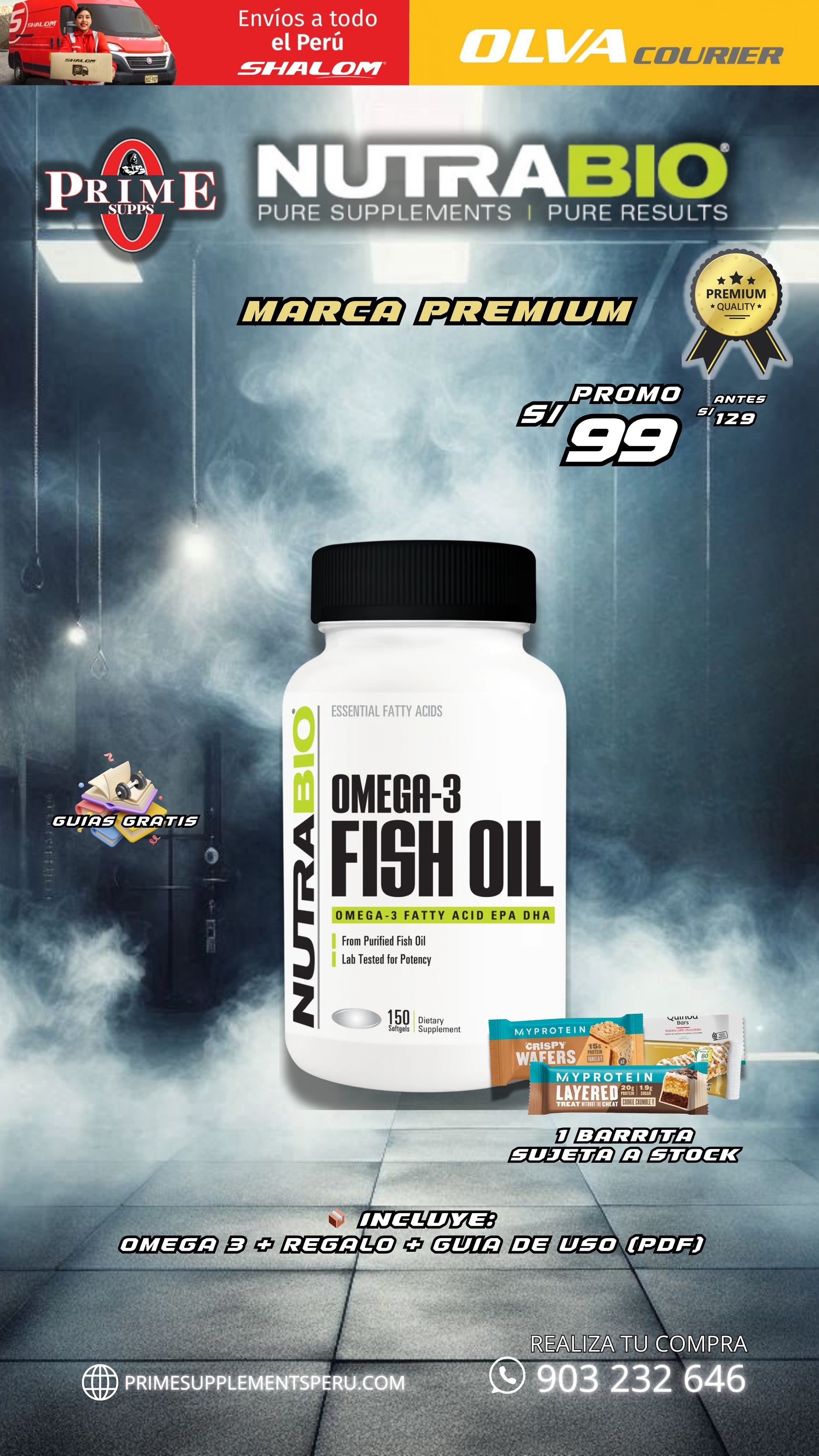 OMEGA 3, 150 CAPSULAS, NUTRABIO + REGALO 🎁 (PROMO)