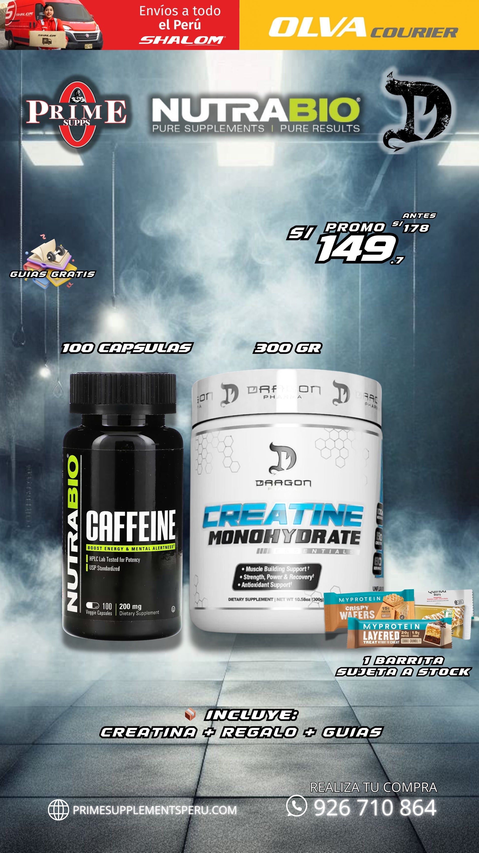 PACK CREATINA DRAGON + CAFEINA 100 CAPS (PROMO)