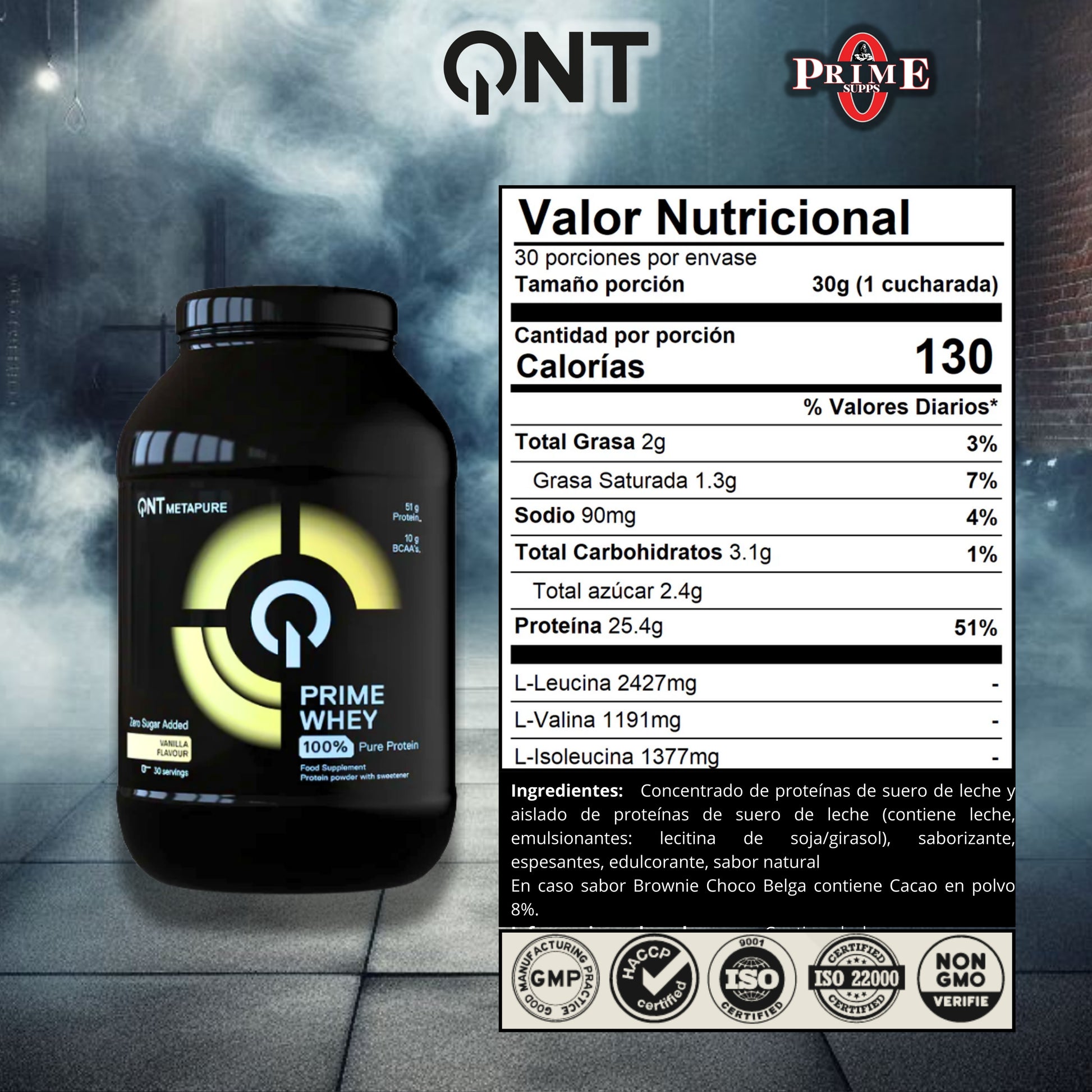 PRIME WHEY, 2LB, 30 SERVICIOS - QNT SPORTS, MADE IN EUROPA, BELGICA